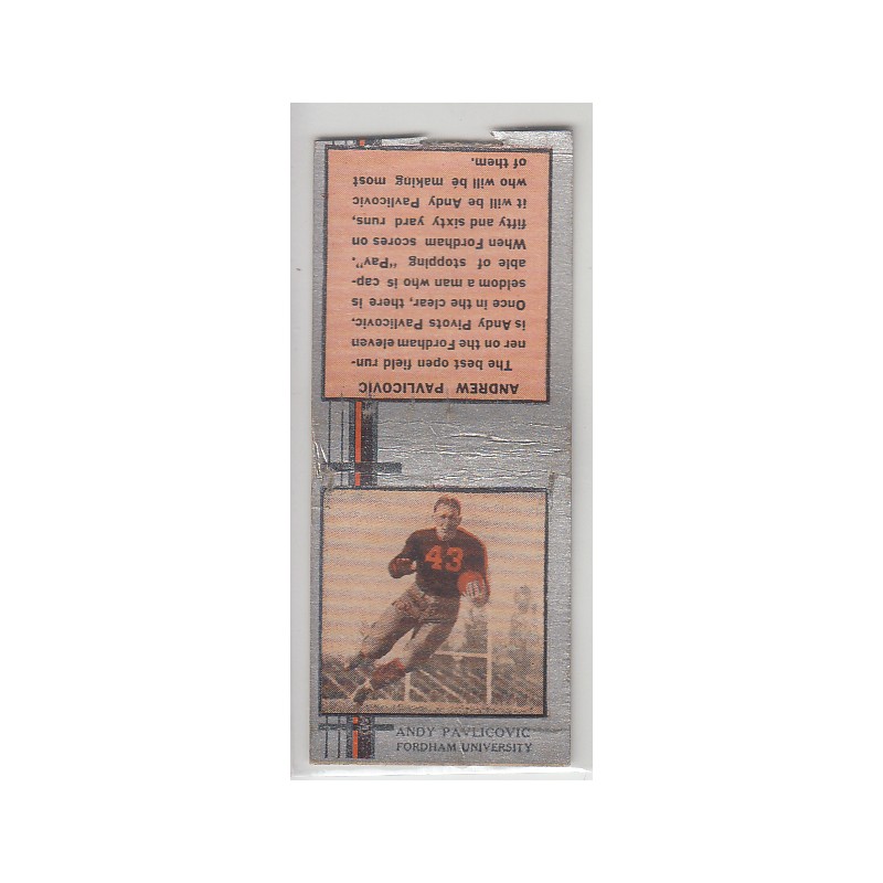 This is a 1933 Diamond football matchbook of Andrew Pavolicovic. It is missing the striker, and is in VG condition.