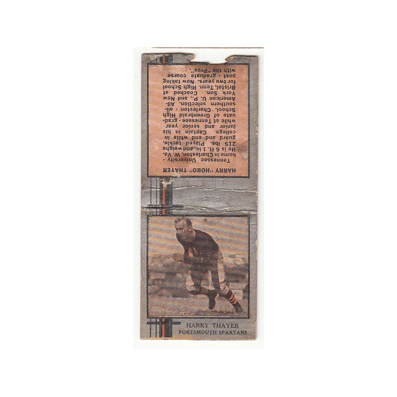 This is a 1933 Diamond Matchbook of Harry Thayer. It is in P condition, and has no striker. There is glue residue on the back.