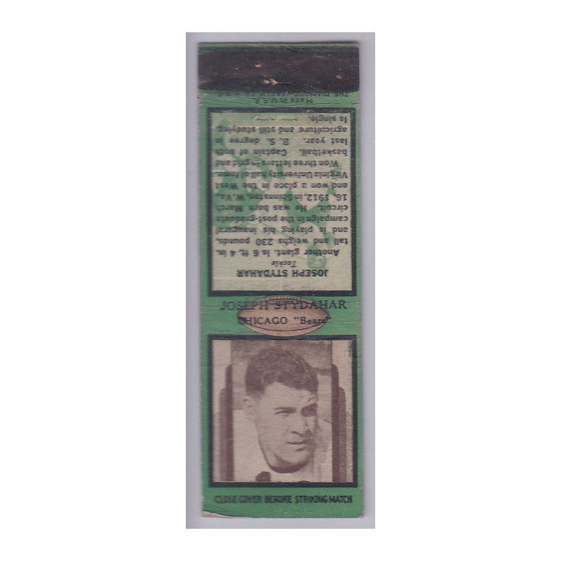 This is a 1936 Diamond Matchbook of Joseph Stydahar. It is green, and has the striker. The matchbook is in VG condition.